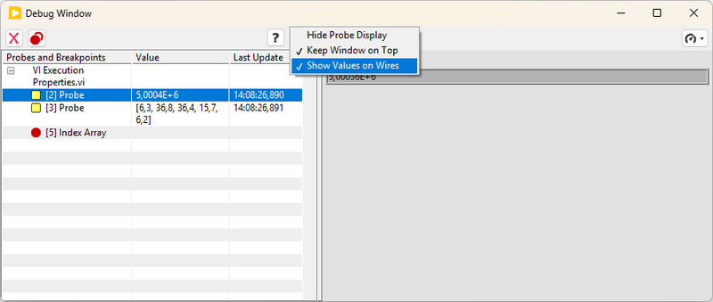 Debug Window Debug Options