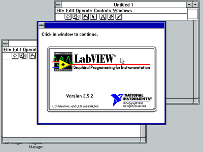 [[File:LabVIEW-2.5-win3x-about.png|thumb|400x300px|center|LabVIEW 2.5.2 for win3x About dialog]] | |||