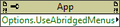 Application-Options-Use Abridged Menus.png 158 × 36; 932 bytes